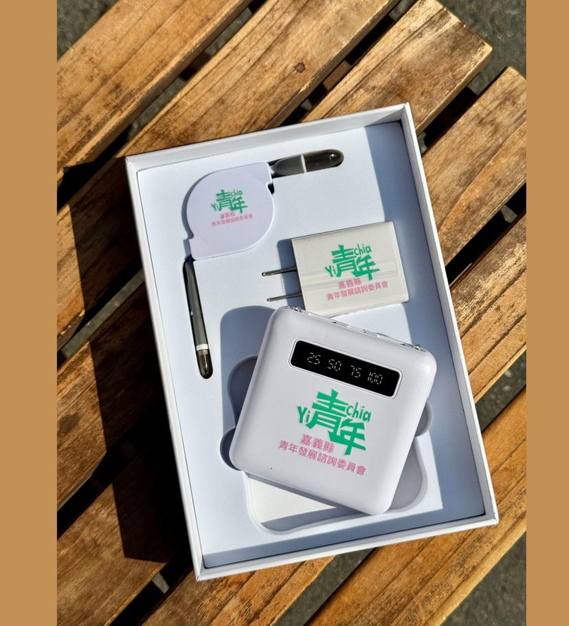 「青諮行動力」專屬禮盒,內含多功能行動電源、充電線與插頭,實用又具紀念意義,陪你持續為嘉義的青年提案注入能量! 📍注意事項 主辦單位保有活動內容及獎項更動、 並更換同質性等值商品之權利,恕不另行通知。